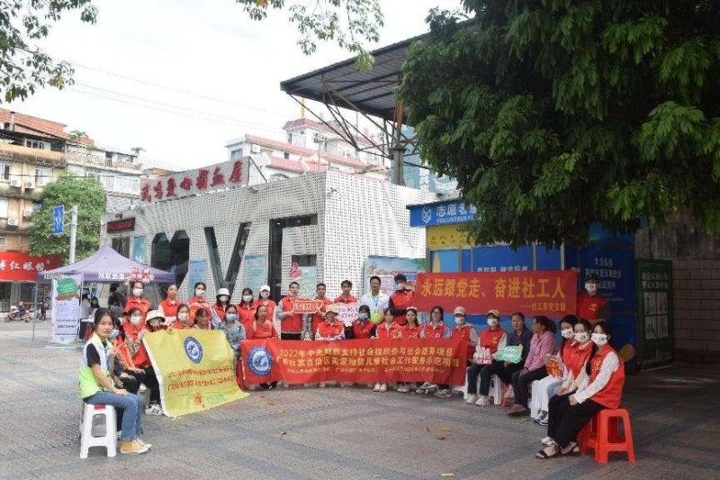 本次活动分两场举行,分别在10月27日和11月3日上午。在社工党支部教师和阳光雨露社工的带领下,2076班社会工作专业的学生志愿者们在南宁市武鸣区文化广场开展活动,通过向武鸣居民普及地贫防治知识,营造全社会关爱地贫儿童的良好氛围。
